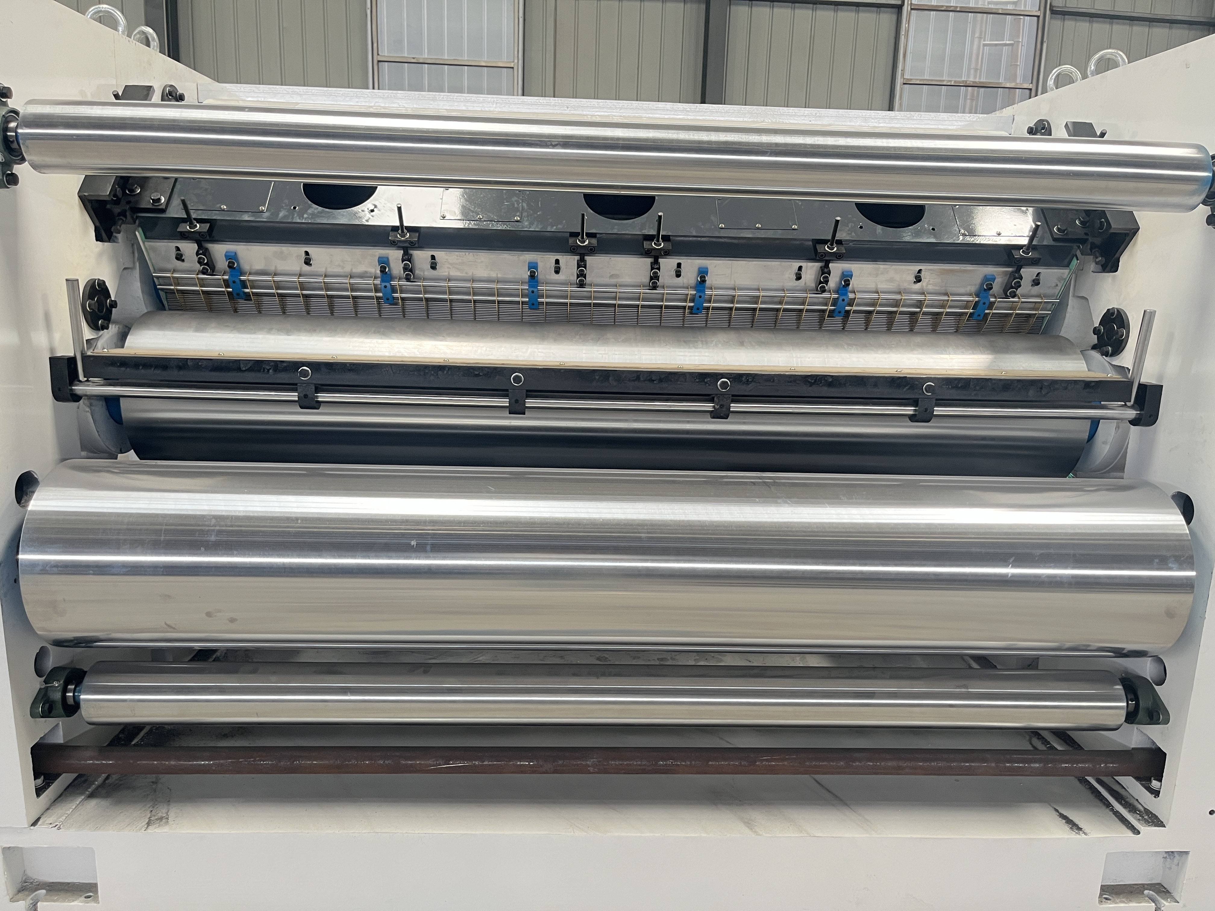 • Pressure roller: ¢370mm, ground and chrome-plated surface, air pressure controlled movement with buffer device